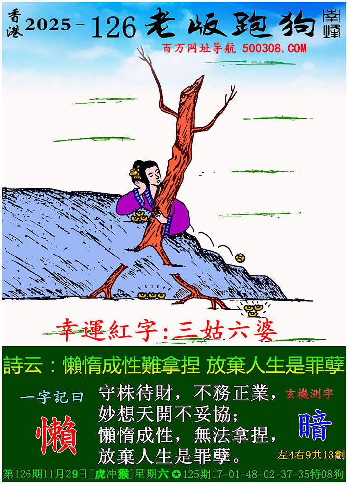 128期跑狗图:一字記之曰:【取】 途失壹履,心憂步遲。 回身覓跡,急趨往取。玄機測字:《炳》 一語中特:一五一十