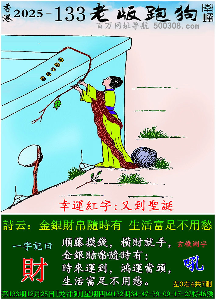 133期跑狗图:一字記之曰:【瓜】 瓜熟香浮,竹竿暗扶。 躡足潛入,狡獸偷涎。玄機測字:《嚇》 一語中特:二人三足